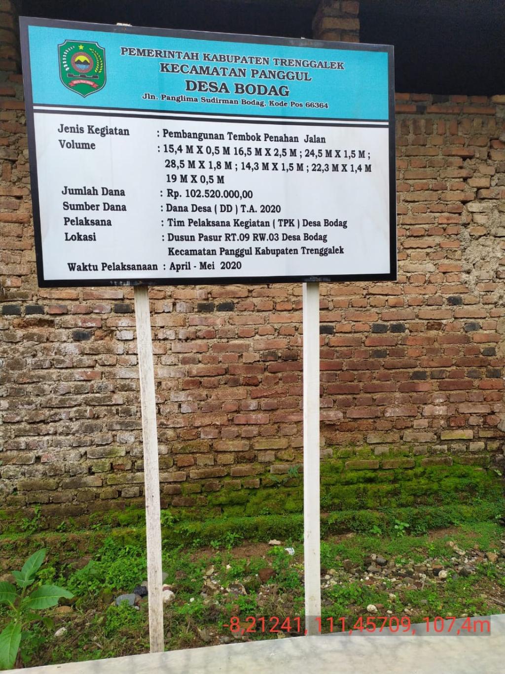TEMBOK PENAHAN JALAN RT.09 TAHUN ANGGARAN 2020