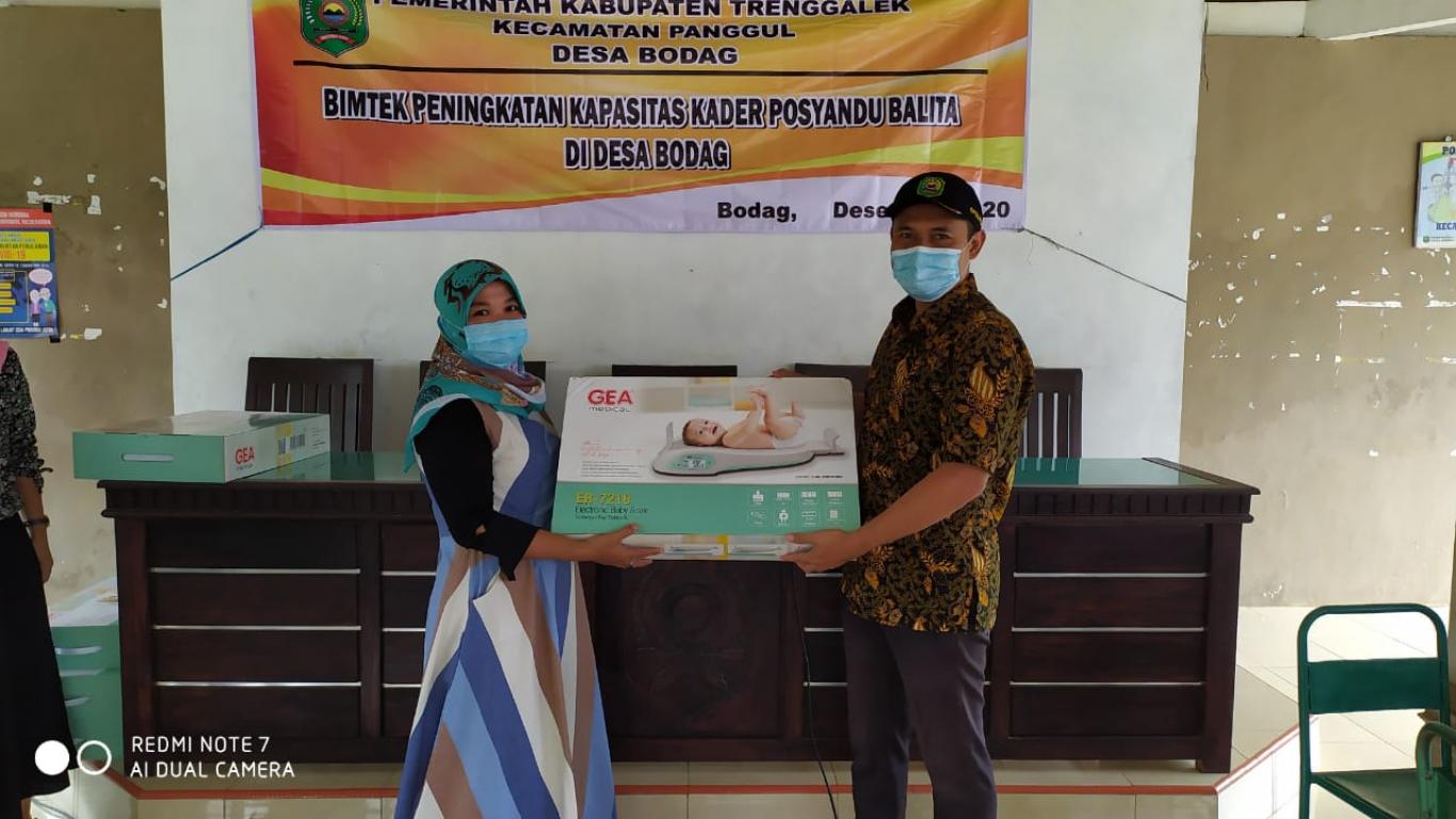 Kegiatan Bimbingan Teknis Peningkatan Kapasitas Kader Posyandu Balita se-Desa Bodag dalam rangka fasiltasi pencegahan dan penanganan stunting serta peningkatan layanan kesehatan bagi seluruh masyarakat Desa Bodag. Kegiatan ini didanai dari APBDes Desa Bodag Tahun Anggaran 2020 dengan peserta sejumlah 25 kader dari seluruh Pos Balita yang tersebar di wilayah Desa Bodag dengan Narasumber dari Puskesmas Bodag. Tidak hanya itu, dalam kesempatan ini juga dilakukan serah terima secara simbolis pengadaan timbangan balita digital untuk 5 Pos Balita oleh Bpk. AGUS WIDODO selaku Sekretaris Desa.