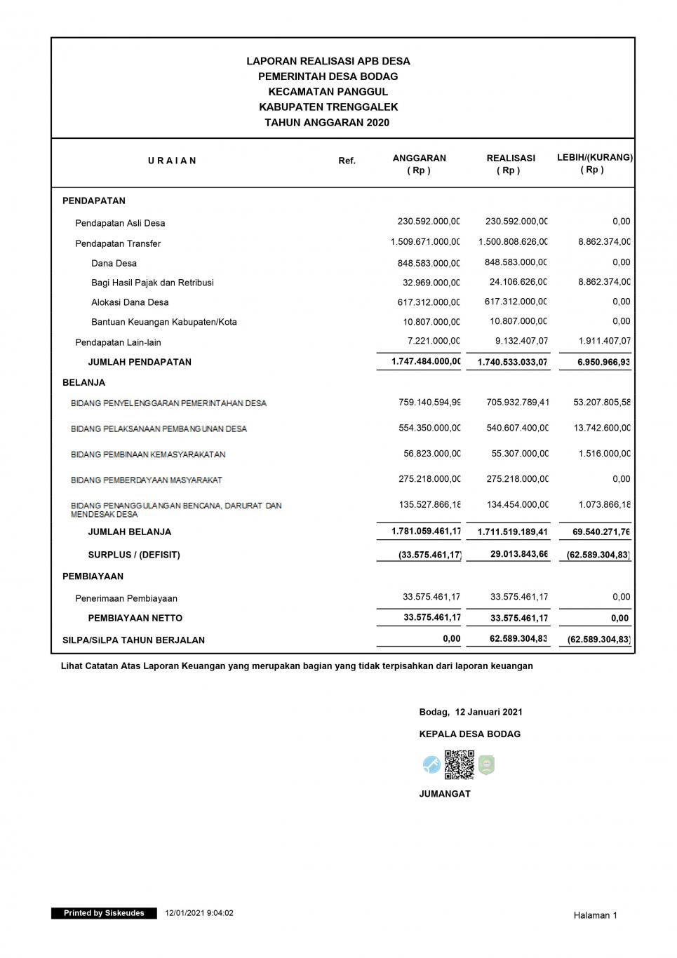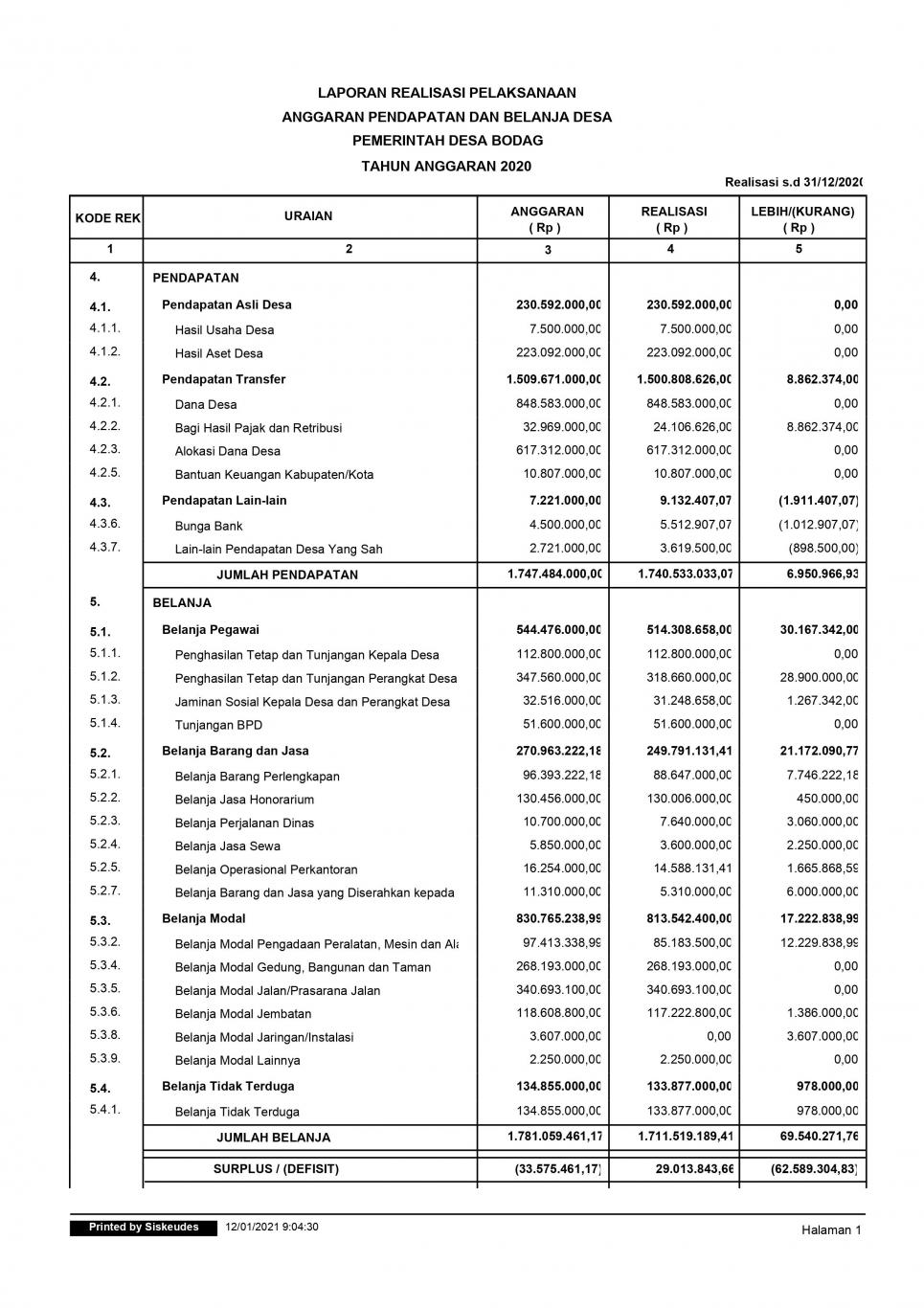 Komentar atas LAPORAN REALISASI APBDes TAHUN ANGGARAN 2020