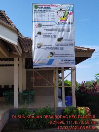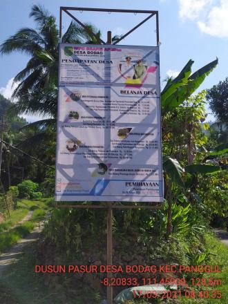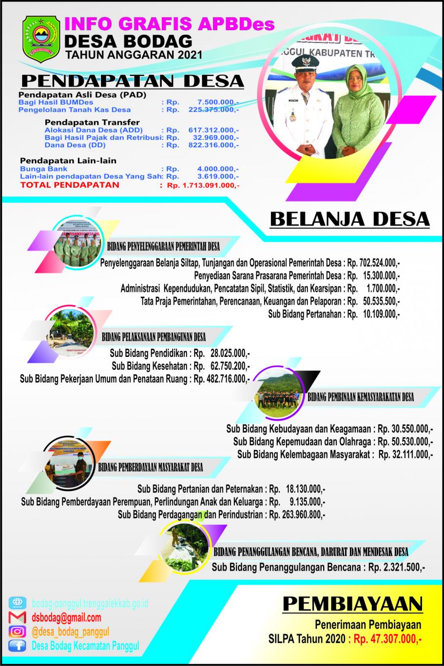 Disusun berdasarkan Peraturan Desa Bodag Nomor 9 Tahun 2020 tentang Anggaran Pendapatan dan Belanja Desa (APBDes) Tahun Anggaran 2021