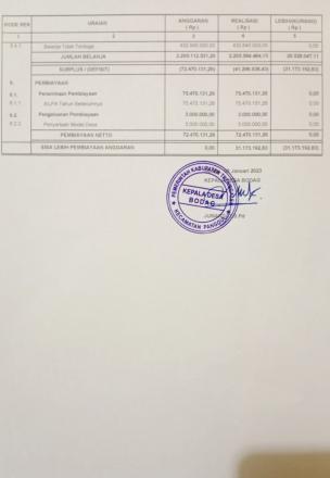 Berdasarkan Peraturan Desa Bodag Nomor 1 Tahun 2023 Tentang Laporan Pertanggungjawaban Realisasi Pelaksanaan Anggaran Pendapatan dan Belanja Desa Bodag Tahun Anggaran 2022