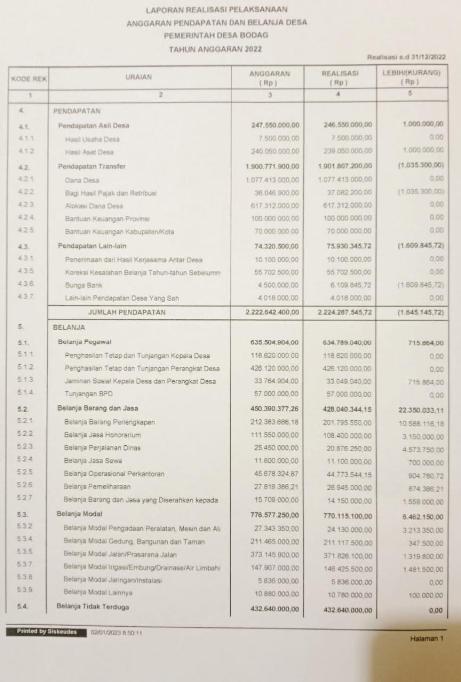 Komentar atas LAPORAN REALISASI PELAKSANAAN APBDes TA.2022