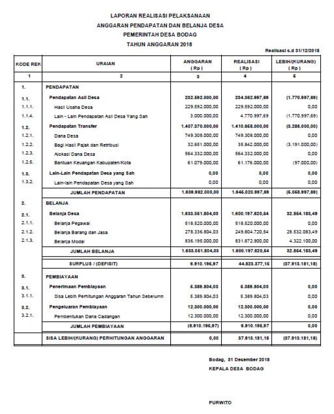 Komentar atas LAPORAN RELISASI PELAKSANAAN ANGGARAN PENDAPATAN DAN BELANJA DESA (APBDes) TAHUN 2018